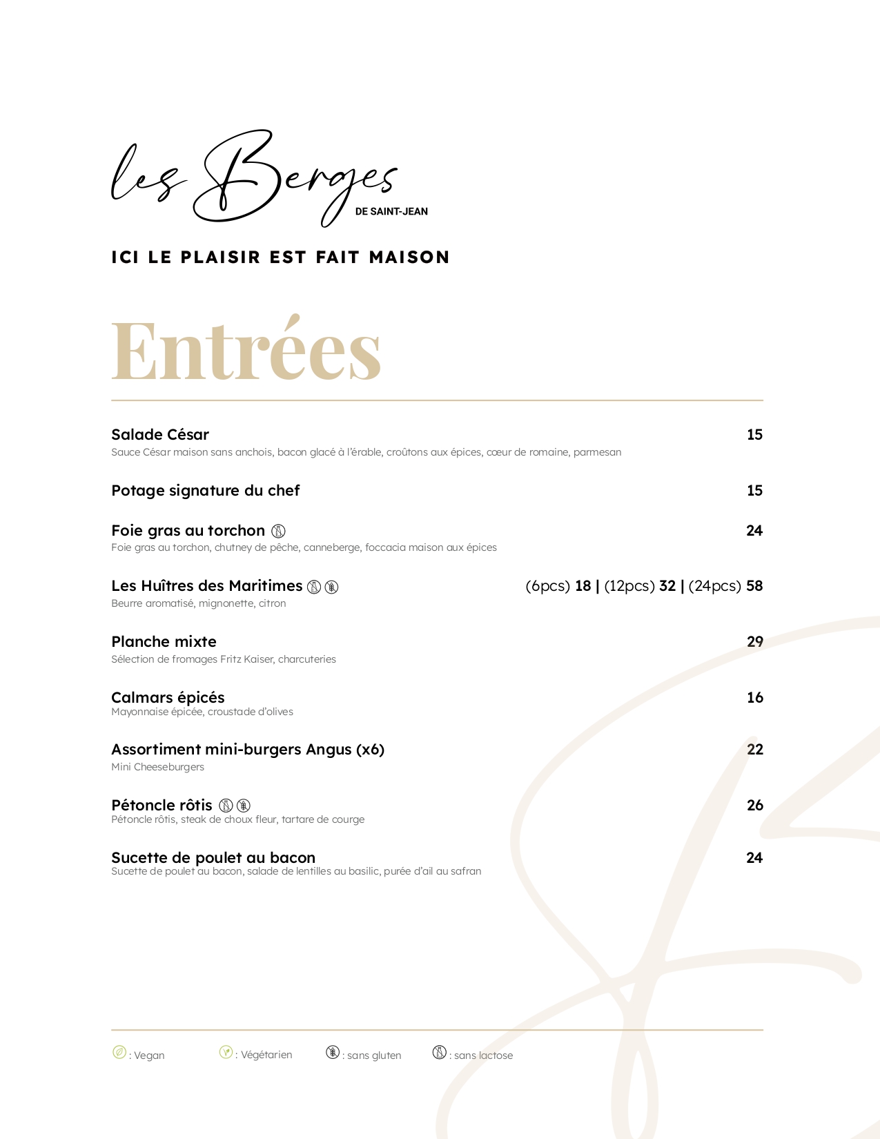 Aux Berges de Saint-Jean nous sommes fiers de notre engagement envers les produits locaux ! Notre restaurant fait partie du programme « Aliments du Québec au menu » : un programme de reconnaissance grâce auquel nous valorisons les produits du Québec dans notre menu.