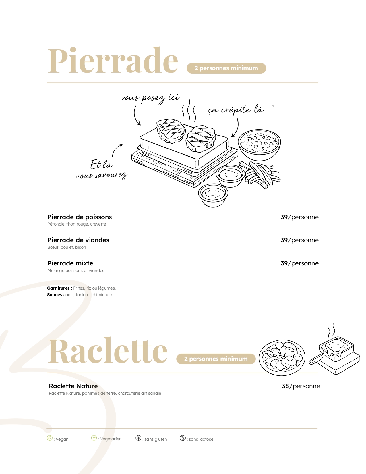 Notre cuisine généreuse et conviviale met en vedette les meilleures viandes et les producteurs locaux en plus d’offrir des options véganes. Notre menu varié saura faire saliver et plaire à tous les pal.